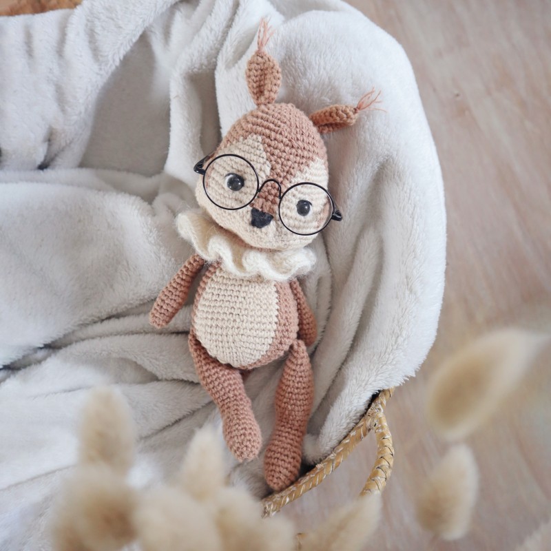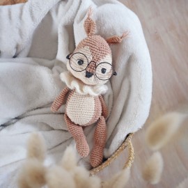 Ce petit compagnon au crochet est aussi tendre que malicieux. Avec son joli museau, son ventre dodu et ses lunettes toutes rondes, il a une bouille irrésistible qui fait craquer petits et grands. Toujours bien emmitouflé dans son écharpe ou son col à volants, Bucky aime imaginer de belles aventures, le cœur plein de douceur.