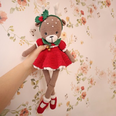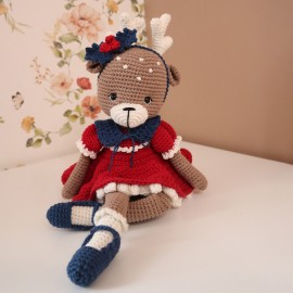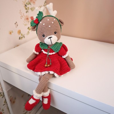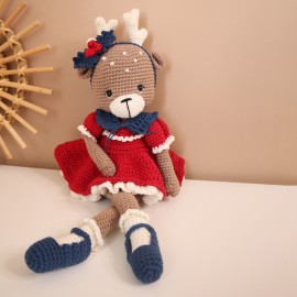 Solveig, la petite renne magique, vous plonge dans l’esprit de Noël avec sa robe tartan élégante, son col délicat décoré de grelots et son serre-tête festif en houx et baies. Une création parfaite à crocheter pour illuminer votre déco ou faire plaisir à un enfant.
