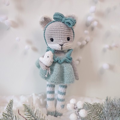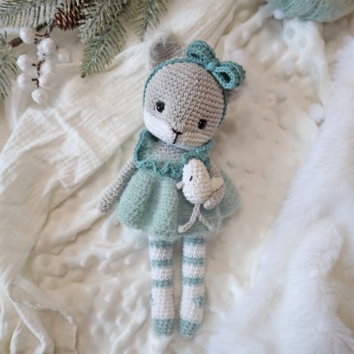 Crocheté en 2,5 mm, la renarde mesure environ 28 cm.