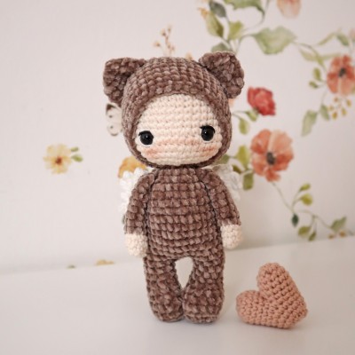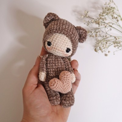 Crocheté en 2,5 mm, Câlinours mesure environ environ 14 cm.